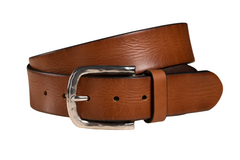 Jeans Riem in Rundleer met Verzilverde Gesp 1-Cognac