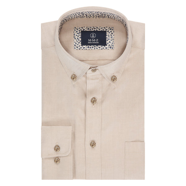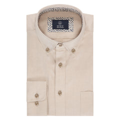 Effen Overhemd met Buttondown in Katoenblend 074-beige