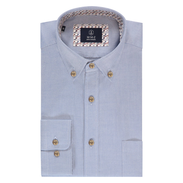 Effen Overhemd met Buttondown in Katoenblend Middenblauw