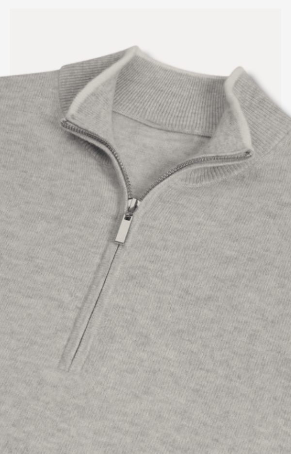 Quarterzip Trui in Two Ply Merino Cashmere Antraciet