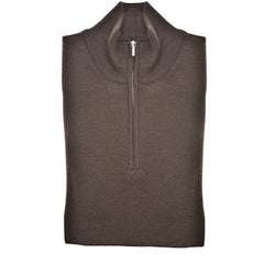 100% Merino trui met rits bruin 040-Dark brown