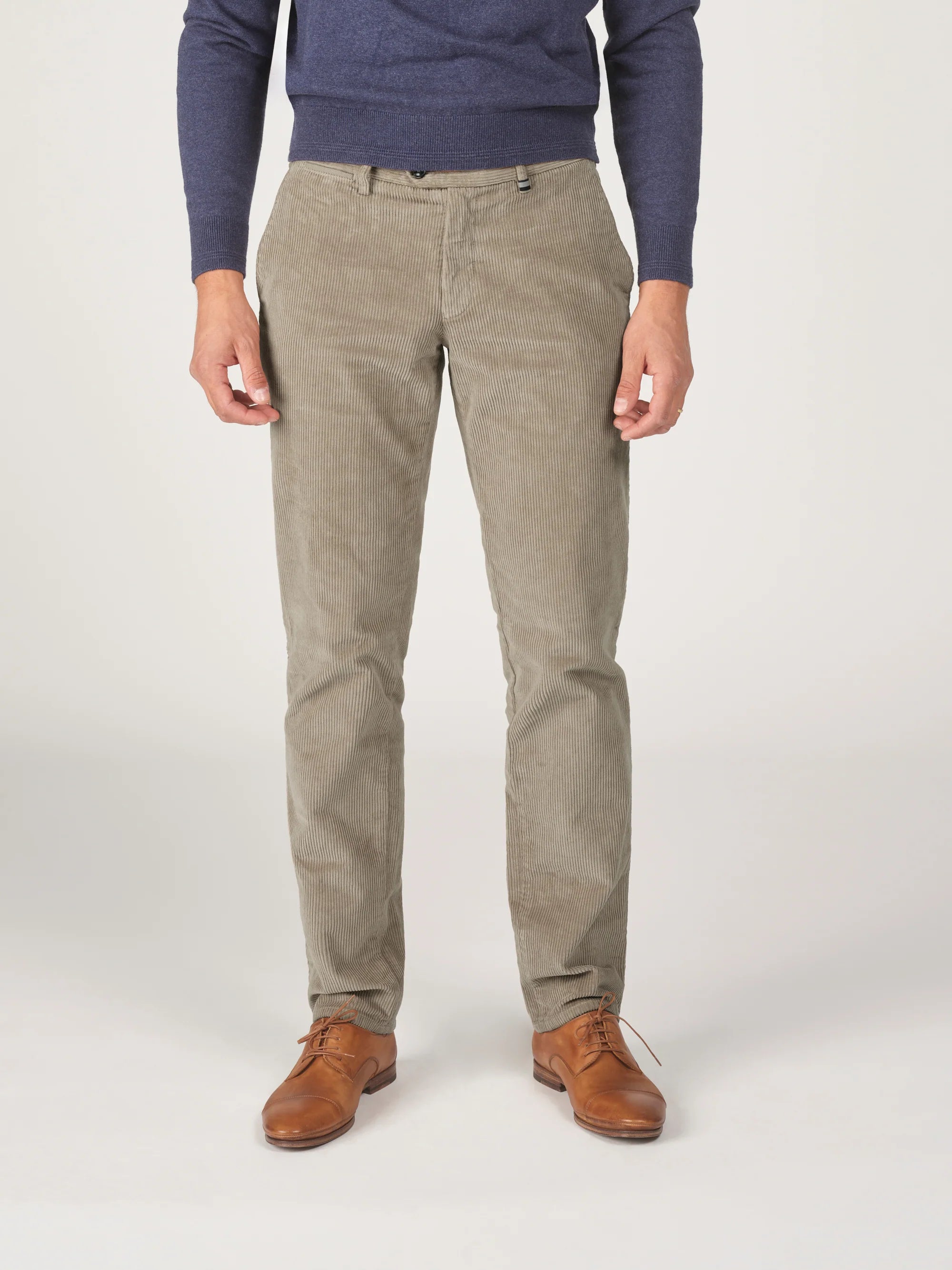 Chino in Stretch Katoen Corduroy 2074-Khaki