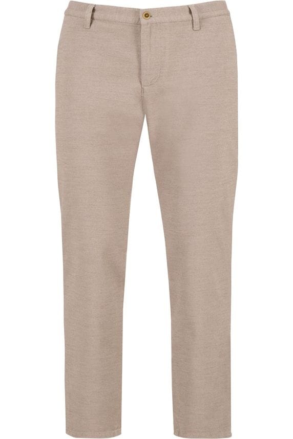 Deze broeken zijn een perfecte mix van stijl en comfort. De neutrale beige tint maakt het combineren met andere kledingstukken eenvoudig. Het katoenmix materiaal zorgt ervoor dat je de hele dag door geniet van draagcomfort zonder concessies te doen aan uitstraling.